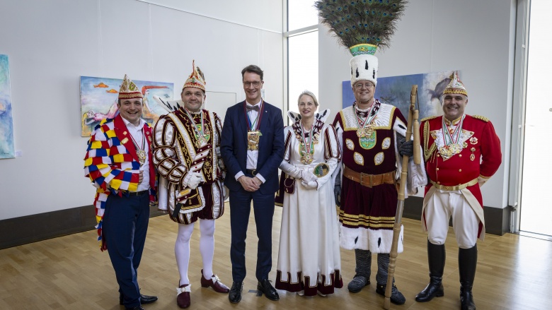 Nach dem offiziellen Empfang durch den Landtagspräsidenten folgte die Vorstellung und Ehrung der zahlreichen Tollitäten aus Nordrhein-Westfalen. Martin Lucke, der die Gäste aus Bergisch Gladbach durch den Landtag führte, erklärte seine Rolle als Abgeordneter und zeigte die Räumlichkeiten, in denen an diesem Tag die Narren den Ton angaben. Ein besonderer Höhepunkt war die Verleihung des Ordens des Ministerpräsidenten an das Bergisch Gladbacher Dreigestirn – eine hohe Auszeichnung, die Ministerpräsident Hendrik Wüst persönlich überreichte.